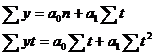 Параметры а0 и а1 находятся по формуле наименьших квадратов при помощи построения системы уравнений