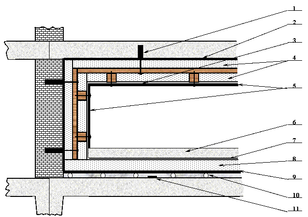 9 – гидроизоляция пола (слой битума или полиэтиленовой пленки);