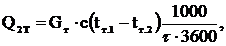 Q=Q1+Q2+Q3+Q4+Q5, Вт,