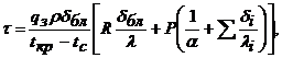 - сумма тепловых сопротивлений стенок блок-формы и слоев упаковки, (м2К)/Вт;