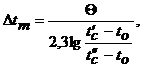Среднюю логарифмическую разность температуры между воздухом и кипящим холодильным агентом определяют по формуле: