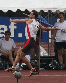 Попытку в метании копья выполняет Стефан Стединг. Чемпионат мира по лёгкой атлетике в Осаке 2007 г.