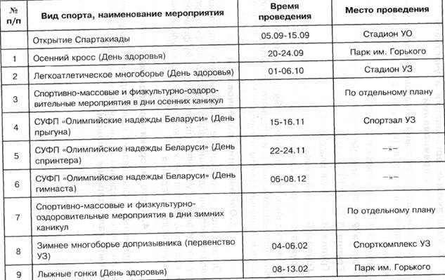 14 | Летнее многоборье допризывника (первенство УЗ) | 04-06.04 | Спорткомплекс УЗ |