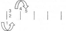 Для чередования игр на своём и чужом поле составляется таблица для нечётного количества команд (в нашем примере 5 команд, если чётное, то + 1). Для этого проводится нечётное количество вертикальных линий по количеству игровых дней (туров). Под первой линией ставится номер 1. Чтобы определить какое количество номеров ставить между линиями и какое число поставить над второй вертикальной линией, чётное число команд (при нечётном + 1) разделить на 2, + 1 и это число записать над второй вертикальной линией.
