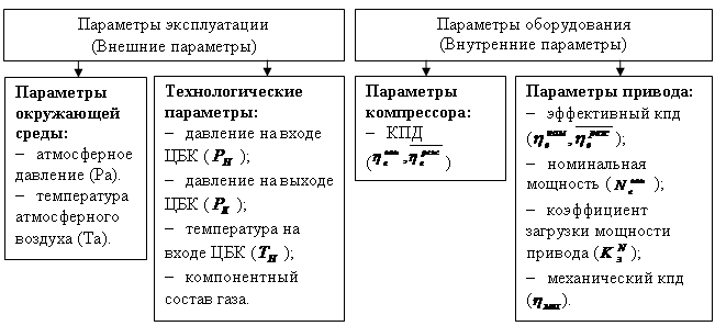 Параметры режимов работы исследуемой системы (ДКС и ГПА) можно разделить на внешние и внутренние (рисунок 1).