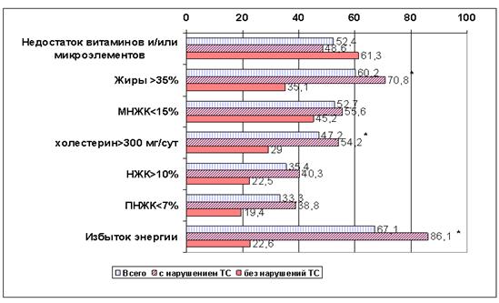 Примечание: * -p<0,05 по сравнению с группой без нарушения ТС, методом χ2.