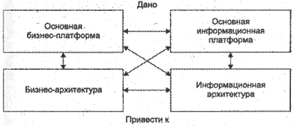 Для перехода к анализу ИТ и методов проектирования ИС необходимо рассмотреть влияние рыночной динамики и РБП на применение ИТ, например в рамках изложенной выше схемы Дж. Хендерсона. Дело в том, что если динамика рынка заставляет корпорацию делать реинжиниринг основных видов деятельности, т. е. менять бизнес-платформу, то при этом должна измениться не только архитектура организации, но и ИТ-платформа. Это бывает в случае, если предприятие переходит от торговли продуктами питания к работе в области, например, телекоммуникаций.