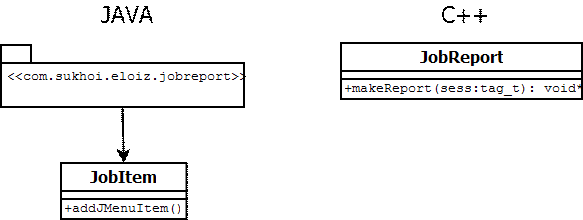 Добавление пункта меню должно производиться с помощью класса написанного на языке Java SE 1.4, а логика генерирования отчета на языке C++ как динамическая библиотека (dll).