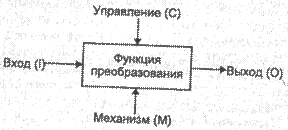 Основная цель бизнес-процесса — преобразование входа, т. е. входящих в процесс ресурсов, необходимых для реализации процесса, в выход, т. е. результат, или продукцию процесса. Основной составляющей бизнес-процесса является функция преобразования. Она представляет собой совокупность подпроцессов, работ и операций, осуществляемых над входами для получения выходов. Процесс осуществляется с помощью определенного механизма (способа, технологии). Процесс происходит не сам по себе, он управляется (т. е. организуется, планируется, контролируется) и производится конкретным исполнителем (группой). В процессе задействован ряд участников (отдельных специалистов или групп). На входе участником процесса является также поставщик процесса — тот работник, который предоставляет входящие ресурсы.