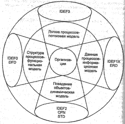 Очевидно, что для сложных систем практически невозможно получить единственное описание, отвечающее на все вопросы с точки зрения управления, пригодное для достижения всех ключевых целей. Являясь по своей природе многогранной по формам и содержанию представления, организация (система) как совокупность взаимосвязанных компонентов может быть описана в виде целого ряда самостоятельных, законченных «проекций», количество которых, кроме всего прочего, определяется целями менеджмента (рис. 1.6).