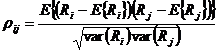 мы находим все парные коэффициенты корреляции между доходностями акций i и j, где