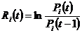 - временной ряд, описывающий доходность акции i, который можно получить из цен закрытия той же акции по формуле