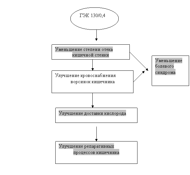 При включении в состав инфузионной терапии ГЭК 130/0,4, особенно в сочетании с полиионными сбалансированными кристаллоидными растворами, уменьшает степень отека слизистой кишечника, улучшается кровоснабжение и огсигенация микроворсинок, что, в конечном итоге, приводит к улучшению послеоперационной репарации кишечной стенки, уменьшению степени выраженности болевого синдрома.