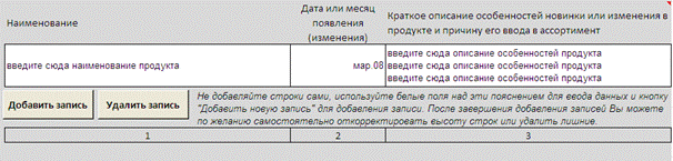 Этот лист заполняется также как и предыдущие листы (см. инструкцию по заполнению пополняемых списков).