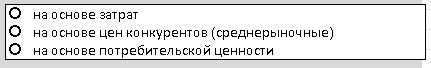 · Вариант «на основе затрат». Это определение цены только на основе производственно-коммерческих издержек и плановой величины прибыли. Он свойственен