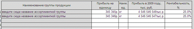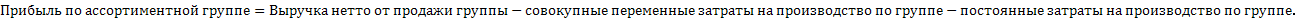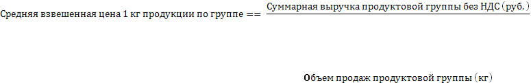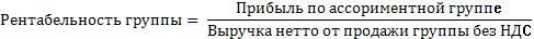 Для удобства расчетов показатели разнесены по ассортиментным группам.