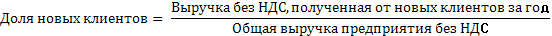 · Доля новых клиентов. Определяется на основе выручки без НДС, поступившей от новых клиентов за год.