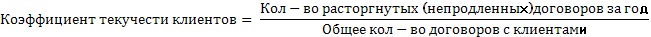 · Коэффициент текучести клиентов. Рассчитывается по следующей формуле: