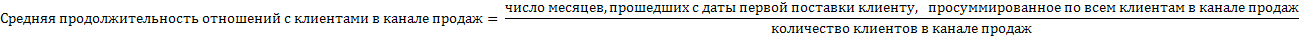 · Средняя продолжительность отношений с клиентами в канале продаж. Определяется либо экспертно и приблизительно, либо рассчитывается по формуле: