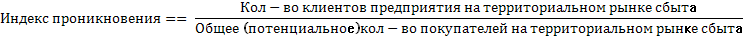 Индекс проникновения считается для клиентов по всем ассортиментным группам, реализуемым предприятием на территориальном рынке.