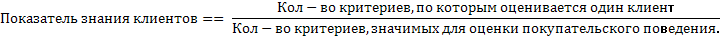 I. Показатель знания клиентов. Этот показатель контролирует, насколько активно Ваше предприятие добывает и использует информацию о клиентах, их предпочтениях и особенностях. Определение показателя становится стимулом для постоянного расширения информационной базы, но все же в разумных пределах, позволяющих добиваться большей эффективности работы с клиентами, чем конкуренты. Рассчитывается по формуле: