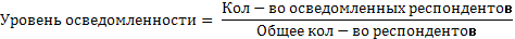 2. Вопрос 2. Уровня осведомленности потребителей о предприятии и его продукции. Рассчитывается по формуле: