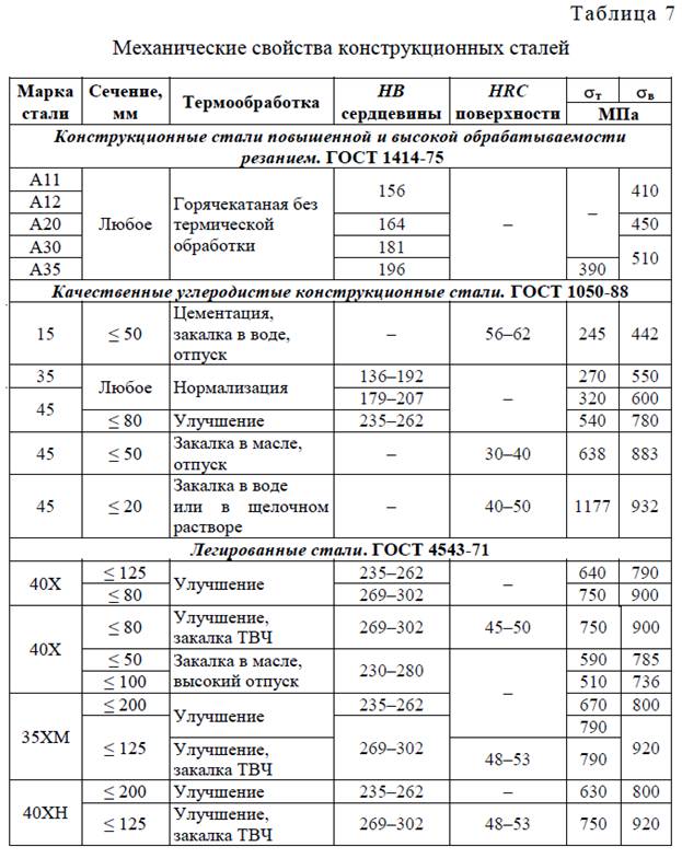 Маркой стали балки задаться самостоятельно (табл. 7).