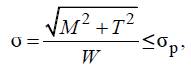 Напряжения в наиболее опасном сечении вала определяют (по третьей теории прочности) по формуле