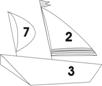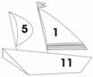 Из картона или цветной бумаги сделать и вырезать кораблики. На лодках записать знаменатели дробей 11, 3, 4, 5, 7, 99. на больших парусах записать числители 1, 2, 3, 13, 41, 100, а так же чтобы запутать детей 21, 101, 30. А на маленьких флажках написать целые части будущих смешанных чисел 5, 7, 6, а так же 8 и 3. Кораблики должны быть приблизительно такого вида, а размер надо подобрать для магнитной доски.