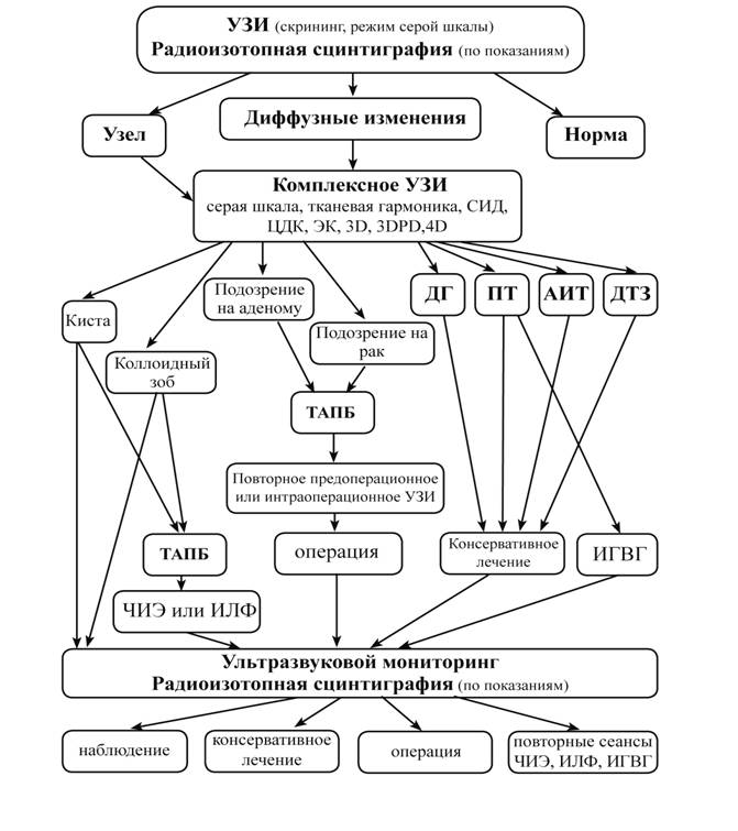 АЛГОРИТМ ИСПОЛЬЗОВАНИЯ МЕТОДОВ ЛУЧЕВОЙ ВИЗУАЛИЗАЦИИ И ИНТЕРВЕНЦИОННЫХ ВМЕШАТЕЛЬСТВ ПРИ ЗАБОЛЕВАНИЯХ ЩИТОВИДНОЙ ЖЕЛЕЗЫ