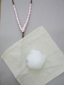 2. В центр квадратного белого лоскута кладеи кусочек синтепона.