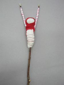 5.Помещаем голову между веточек-рук. Приматываем туловище красной ниткой к веточке.