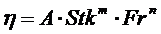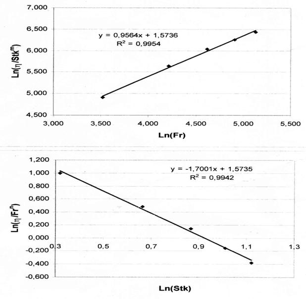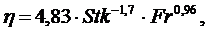 в интервале 1,37 ≤ Stk ≥ 3,07 и 33,75 ≤ Fr ≥ 168,74 отклонение опытных данных, от расчетных, не превышало ±7%.