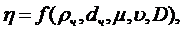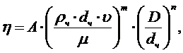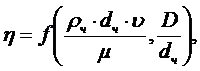 Критериальная зависимость к. п.д. циклона от перечисленных выше основных физических параметров процесса, при допущении наличия в аппарате подобия движения воздушных потоков, можно записать следующим образом: