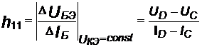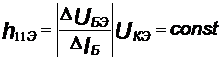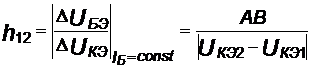 Параметры h11Э и h12Э схемы с ОЭ на семействе входных характеристик в рабочей точке А находят по формулам в соответствии со следующими графическими построениями (рисунок 3):