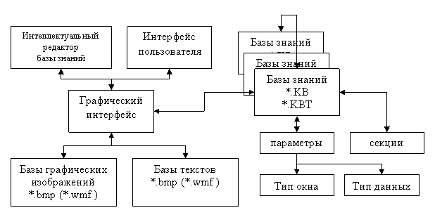 Такая экспертная система может состоять из базы знаний (баз знаний), базы графических изображений, базы текстов.