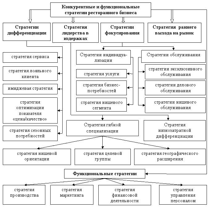 Рисунок 2 - Конкурентные и функциональные стратегии ресторанного бизнеса