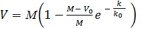 С увеличением k реальная мощность предприятия ресторанного бизнеса, т. е. эффект Э, будет увеличиваться. Обозначим ее через V. Подставив в (4) предлагаемые значения Э, Эmax и А0, получим следующую формулу для расчета реальной производственной мощности предприятия ресторанного бизнеса: