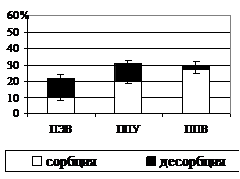 Рисунок 7 – Процентное соотношение сорбции к десорбции клеток