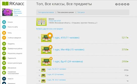 Ребятам нравится работать, потому что у них есть возможность заниматься в удобное для них время, в своём ритме. Интерес также связан с повышением оценок по предметам в конце семестра. Работа на портале ЯКласс в декабре помогла обучающимся, пропустившим занятия, ликвидировать пробелы в знаниях по отдельным темам учебных предметов, подготовить доклады и презентации, используя теоретический материал. В топе групп техникума мы стали первыми из 6 групп. Результат техникума за первый месяц работы - 52 место (на тот момент было 11246 ОУ). За неделю до окончания 1-го полугодия я объявила ребятам о проведении конкурса по информатике «Пятёрка у тебя в кармане» среди обучающихся групп Сл-410, П-человек) по результатам работы с 15 по 25 декабря. Условие: большее количество баллов получено за выполнение тестов (по своему выбору) по предмету «Информатика» за 9-10 классы. По итогам конкурса определились 3 победителя из группы Сл-410, которые получили грамоты.