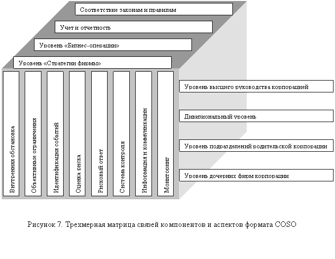 5. Стабильность коммерческого банка требует не только учета актуального рискового профиля самого банка, как это констатирует Базель 2, но, во-первых, учета полного рискового ландшафта банка, и, во-вторых, учета рискового ландшафта клиентуры банка, как специфического финансово-промышленного холдинга или финансовой группы. В качестве методической основы интеграции в рамках формата Базель 2 можно использовать формат COSO, который подходит для обустройства системы управления рисками в организациях любого типа. Необходимо развивать методологию интегративного управления рисками банка и его клиентуры, как единой финансовой группы, к чему подталкивает и логика Базеля 2.