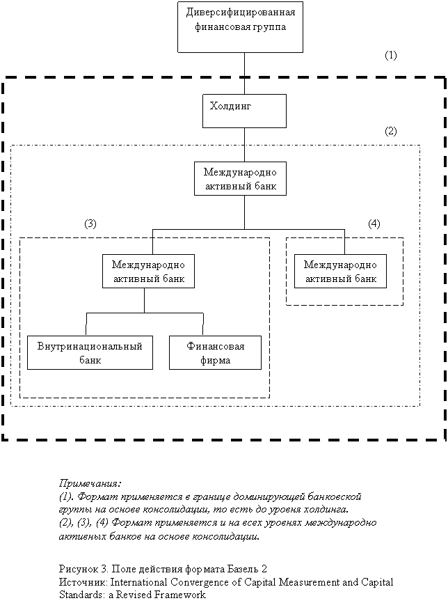 Формат устанавливает более чувствительные к риску минимальные требования к капиталу банковских организаций. Он устанавливает правила учета рисков при оценке адекватности капитала с точки зрения принимаемых банком рисков и осуществлении надзора с целью обеспечения рыночной дисциплины и прозрачности финансовой отчетности банков. Этот текст принят как основа для принятия соответствующих решений на национальном уровне в процессе подготовки к повсеместному внедрению новой системы. При этом и сам документ, и подходы к его реализации ориентированы на принцип «один размер не подходит ко всем» (one size does not fit all)47. Проведенное нами внимательное изучение текста и структуры соглашения Базель 2 приводит к еще одному важному выводу. Хотя он, бесспорно, построен на вышеупомянутом принципе, нельзя не заметить и еще одного принципа, положенного в его основу, а именно «одна структура и одна логика подходит всем». Именно это свойство позволяет надеяться на его широкую применимость с сохранением совместимости результатов и данных, относящихся к разным элементам банковской системы разных стран.