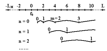В каналах с частотой выше f0 выделим последовательности nm со своими индексами так, чтобы номинальные частоты элементов каждой из них соответствовали условию: