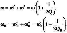 то собственные частоты возмущенного и невозмущенного резонаторов являются комплексными: