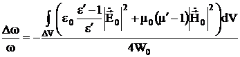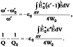 с теми же граничными условиями. Изменение собственной частоты при введении в резонатор диэлектрика или магнетика:
