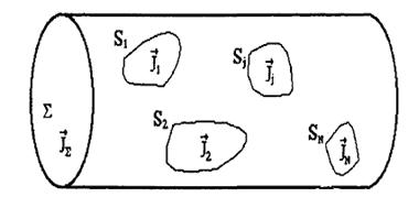 Пусть в отсеке заключены А излучателей, т. е. приборов и кабелей. Каждый из них в отдельности можно описать собственными токами