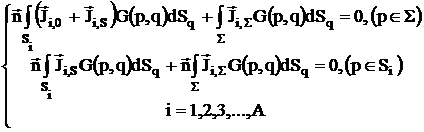 на этих поверхностях, в присутствии идеально проводящих рассеивающих элементов, ограниченных суммарной поверхностью
