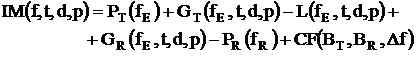 Величина возможной помехи может быть получена путем рассмотрения разности между РА и РR. Эта разность называется уровнем помехи (IM) и является мерой всего вклада в помеху. В общем виде IM есть функция частоты (f), времени (t), расстояния между передатчиком и приемником (d) и направления (p).