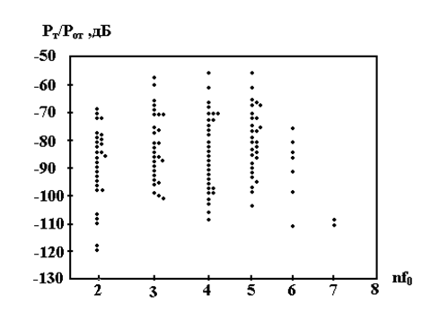 Для оценки некоторых проблем, возникающих при определении входных функций, рассмотрим параметры передатчика. Измерения паразитных выходных сигналов предположительно идентичных передатчиков (т. е. передатчиков одной номенклатуры, отличающихся только серийным номером) выявили различия между ними в пределах 50дБ, носящие случайный характер. На рис.1.2 представлены данные для передатчиков одной номенклатуры с различными резонансными частотами. Эти данные типичны для большого числа передатчиков, которые были испытаны и сообщения о которых получены из различных источников. Кроме того, подобные случайные расхождения измеряемых величин могут быть отнесены за счет разброса параметров распространения, антенны и приемного устройства.