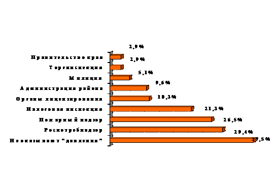 - незаконные проверки («вроде есть предписание – проверять раз в три года, но ведь проверяющих структур масса»; «ко мне пришла милиция - есть информация, что Вы торгуете подпольной водкой, обыск, ничего не нашли, но сколько потрачено времени и нервов» (Комсомольский район).